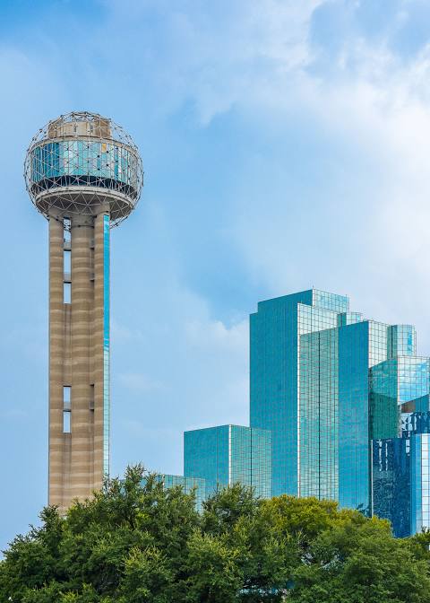 - Reunion Tower : Reunion Tower is a 561 ft observation tower in Dallas, Texas and one of the city's most recognizable landmarks. Located at 300 Reunion Boulevard in the Reunion district of downtown Dallas, the tower is part of the Hyatt Regency Hotel complex, and is the city's 15th tallest building. A free-standing structure until the construction of an addition to the Hyatt Regency Dallas in 1998, the tower was designed by architectural firm Welton Becket & Associates. Wikipedia