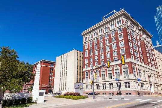 - The Sixth Floor Museum at Dealey Plaza : The Sixth Floor Museum at Dealey Plaza is a museum located on the sixth floor of the Dallas County Administration Building in downtown Dallas, Texas, overlooking Dealey Plaza at the intersection of Elm and Houston Streets. The museum examines the life, times, death, and legacy of United States President John F. Kennedy and is located at the very spot from which Lee Harvey Oswald shot and killed the President on November 22, 1963. 30 minutes after the shooting, Kennedy died at Parkland Memorial Hospital. The museum's exhibition area uses historic films, photographs, artifacts, and interpretive displays to document the events of the assassination, the reports by government investigations that followed, and the historical legacy of the tragedy. The museum is self-sufficient in funding, relying solely on donations and ticket sales. It rents the space from the County of Dallas. The museum was founded by the Dallas County Historical Foundation. It opened on Presidents' Day, February 20, 1989. A museum webcam features a live view from the sniper's post. It is not meant to glorify the shooting in any way.