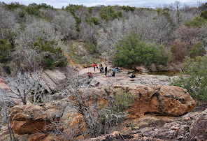- Inks Lake State Park : Inks Lake State Park is a state park located in Burnet County, Texas, United States, next to Inks Lake on the Colorado River. The landscape of the park is hilly, with many cedar, live oak, prickly pear cacti, and yuccas. The ground is rocky, mainly consisting of gneiss rock. Devil's Waterhole is a small extension of Inks Lake, which is almost completely surrounded by rock. A canoe tour is conducted at Devil's Waterhole, and although diving and swimming may be done at the waterhole, it is at one's own risk, without a lifeguard. There is abundant wildlife at the park, including deer, vultures, quail, and many other types of birds. Wikipedia
