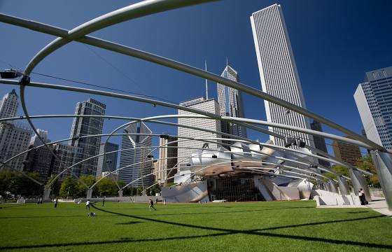 - Millennium Park : Millennium Park is a public park located in the Loop community area of Chicago in Illinois operated by the Chicago Department of Cultural Affairs and managed by MB Real Estate. The park was intended to celebrate the third millennium and is a prominent civic center near the city's Lake Michigan shoreline that covers a 24.5-acre section of northwestern Grant Park. The area was previously occupied by parkland, Illinois Central's rail yards, and parking lots. The park, which is bounded by Michigan Avenue, Randolph Street, Columbus Drive and East Monroe Drive, features a variety of public art. As of 2009, Millennium Park trailed only Navy Pier as a Chicago tourist attraction and by 2017 it had become the number one tourist attraction in the Midwestern United States. In 2015, the park became the location of the city's annual Christmas tree lighting. Planning of the park began in October 1997. Construction began in October 1998, and Millennium Park was opened in a ceremony on July 16, 2004, four years behind schedule. The three-day opening celebrations were attended by some 300,000 people and included an inaugural concert by the Grant Park Orchestra and Chorus.